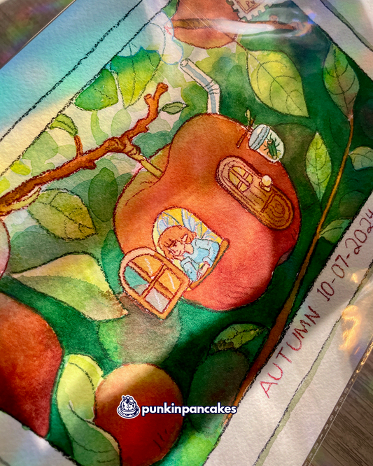 Fairy in an Apple - Original Watercolor